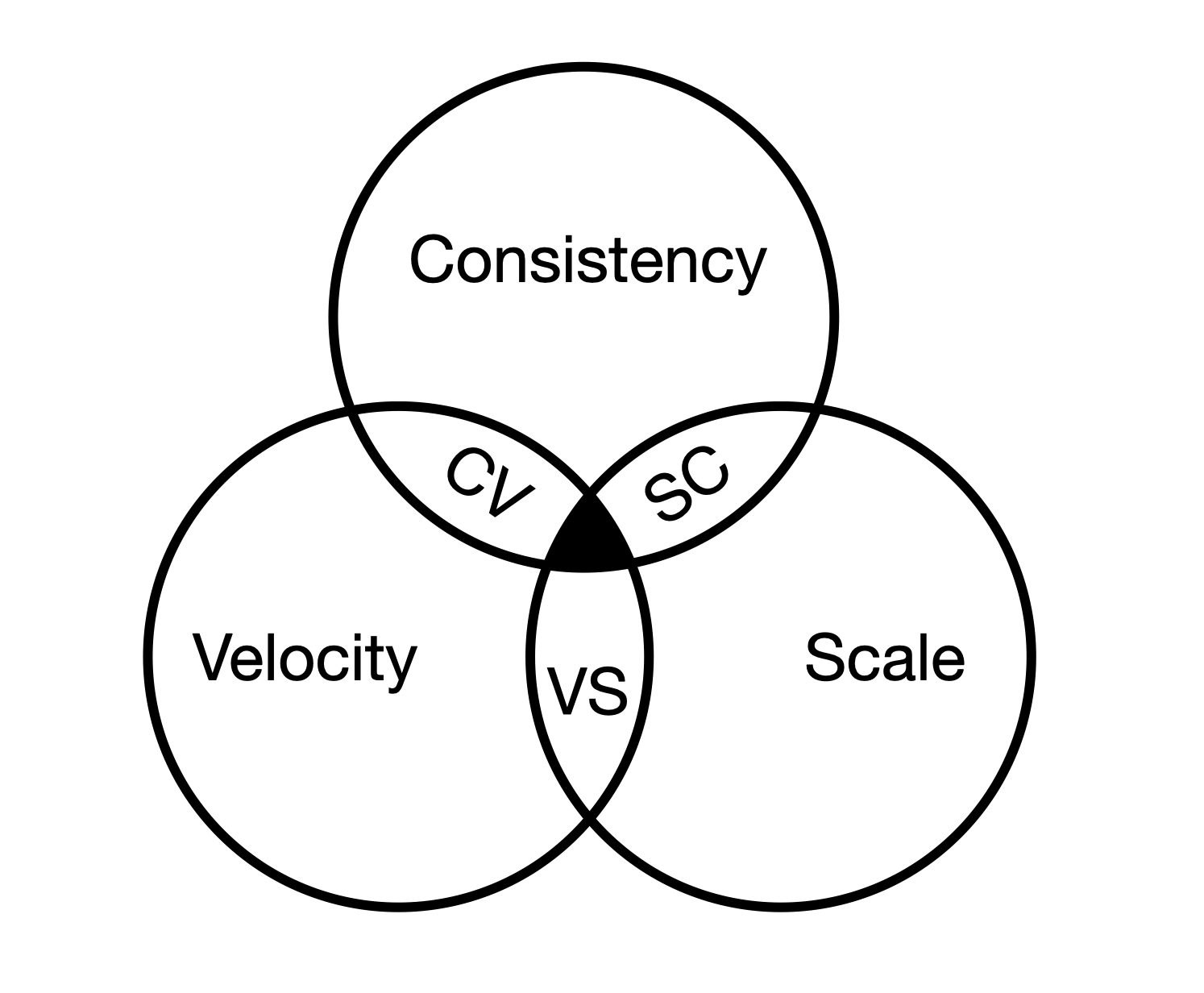 If you want Consistency and Scale, you need massive coordination overhead. Your Architecture team becomes a bottleneck. Everything queues. Velocity becomes a joke.