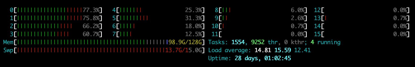 On a Linux system, there’s a number called “load average” that you’ll see if you run uptime or top. Three numbers, representing the average over 1, 5, and 15 minutes. People see these numbers and think they’re measuring CPU utilisation. They’re not